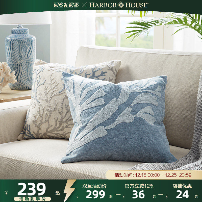 HarborHouse美式家居沙发靠枕套装饰珊瑚链式绣花靠垫套Coralline