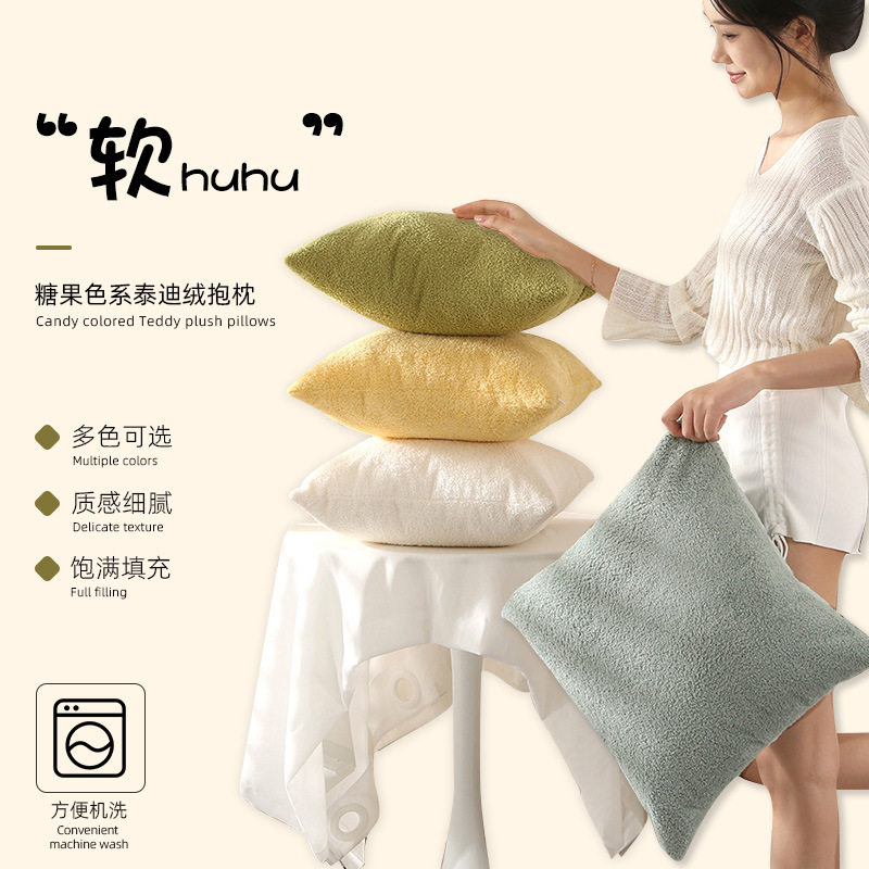 ins泰迪绒抱枕沙发靠枕套靠垫四季办公室午睡枕头汽车腰靠背飘窗