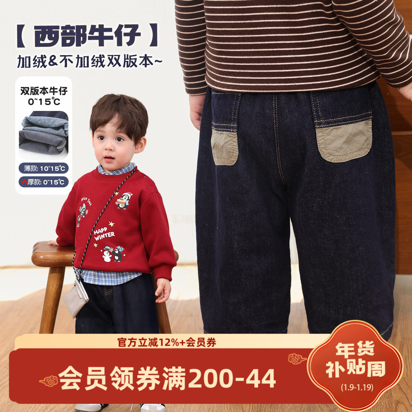 - 男童加绒牛仔裤