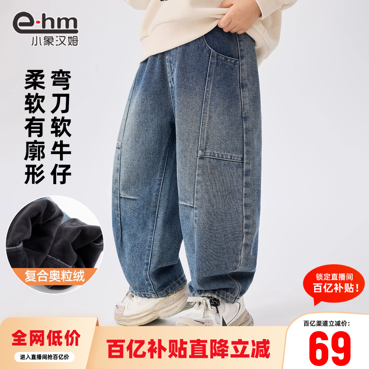 小象汉姆童装男童加绒牛仔裤儿童秋冬裤子2025新款儿童冬装长裤潮