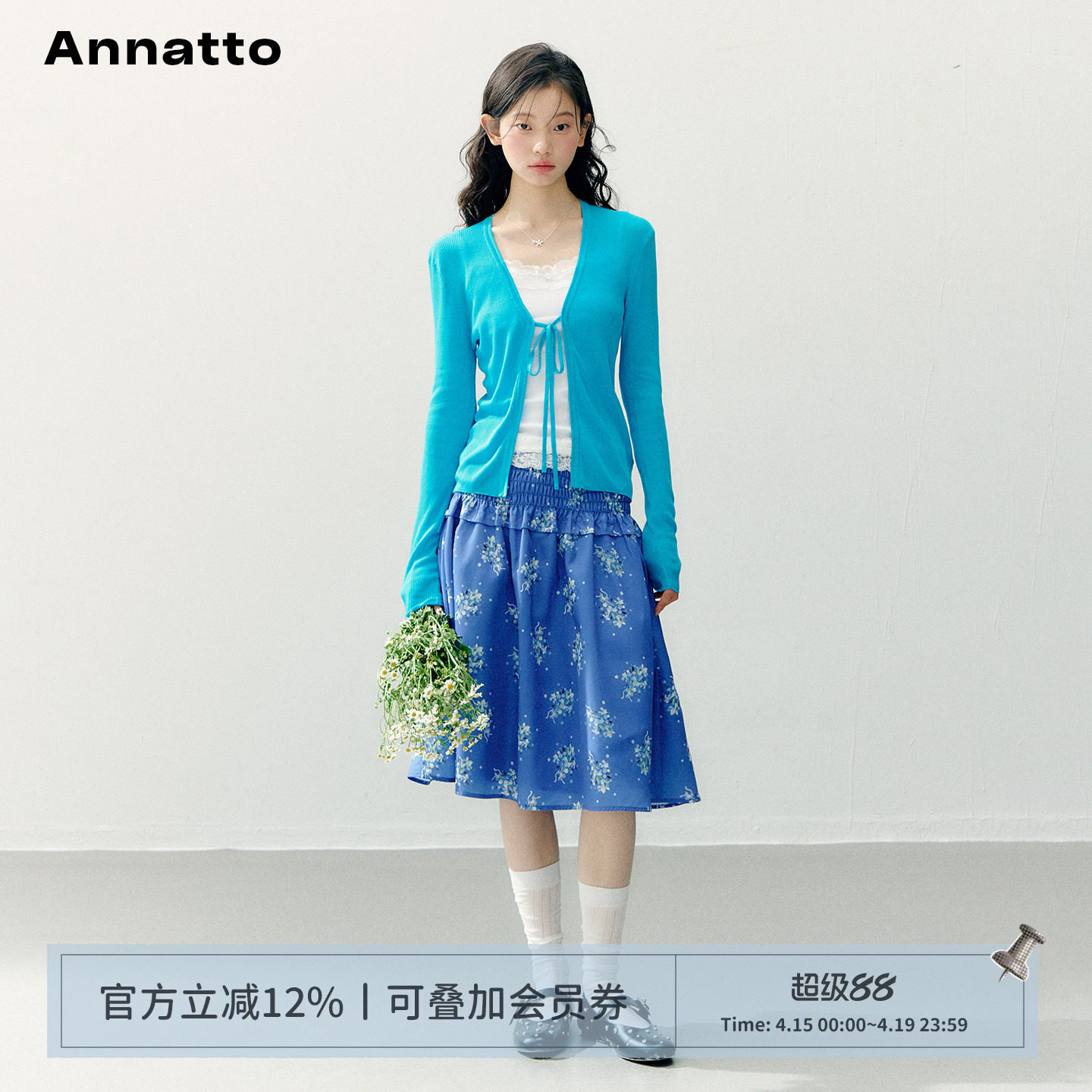 ANNATTO 未完成的深夜 春季蓝色修身开衫毛衣碎花a字半裙套装女