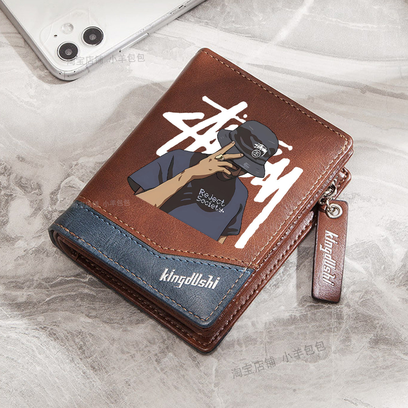 动漫时尚钱包男款高中大学生钱夹大容量个性搭扣拉链皮夹零钱卡包