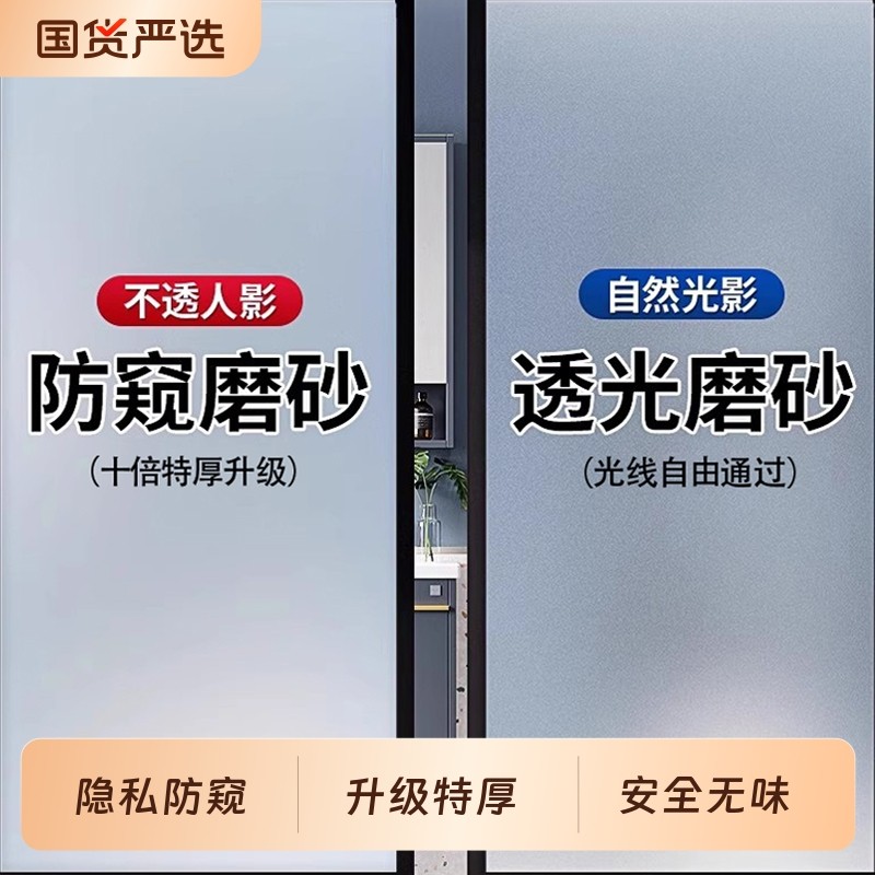 窗户防窥膜卫生间隐私贴膜防走光厕所门磨砂玻璃贴纸透光不透明人