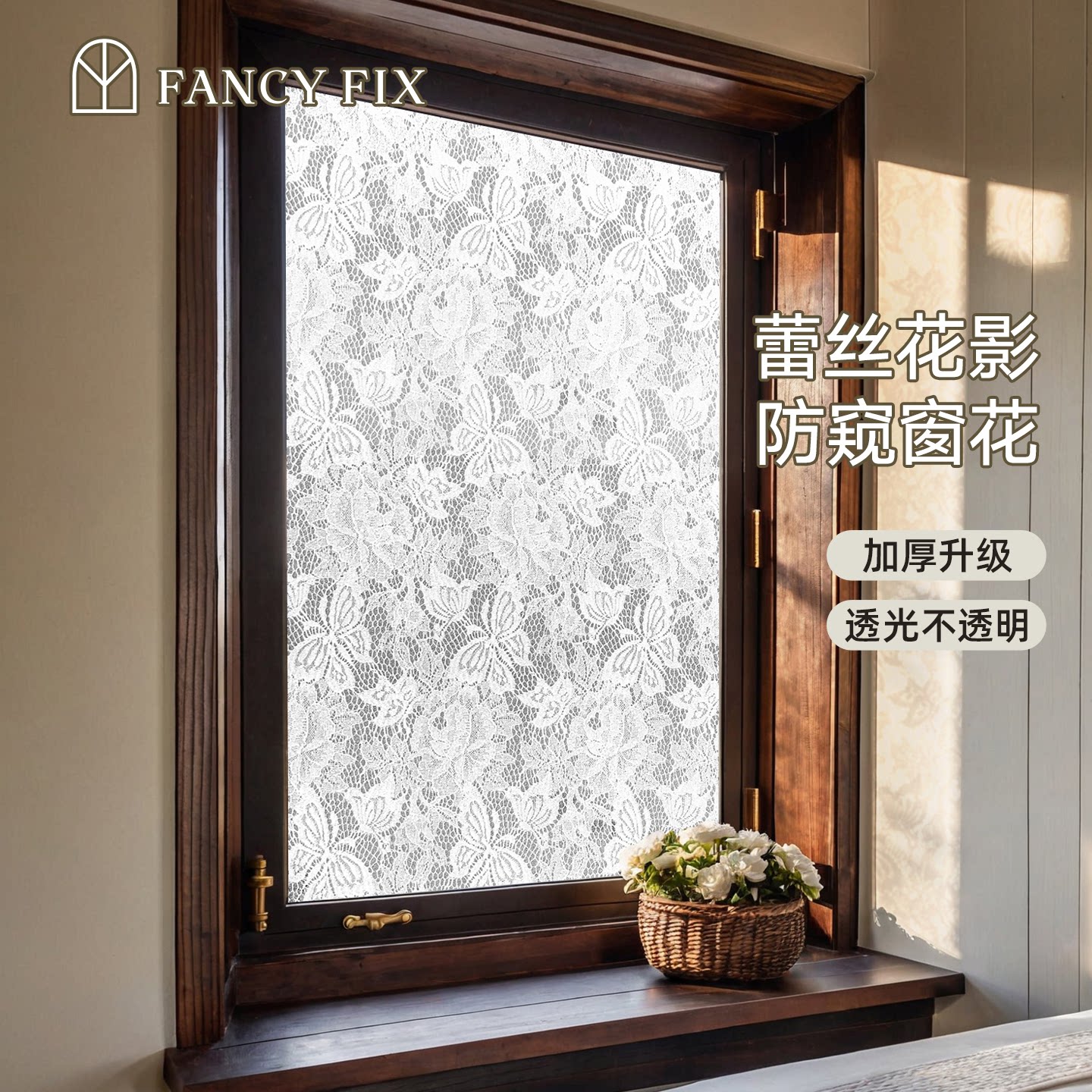 蕾丝玻璃贴纸法式复古窗户装饰贴膜透光不透明卫生间隐私防窥磨砂