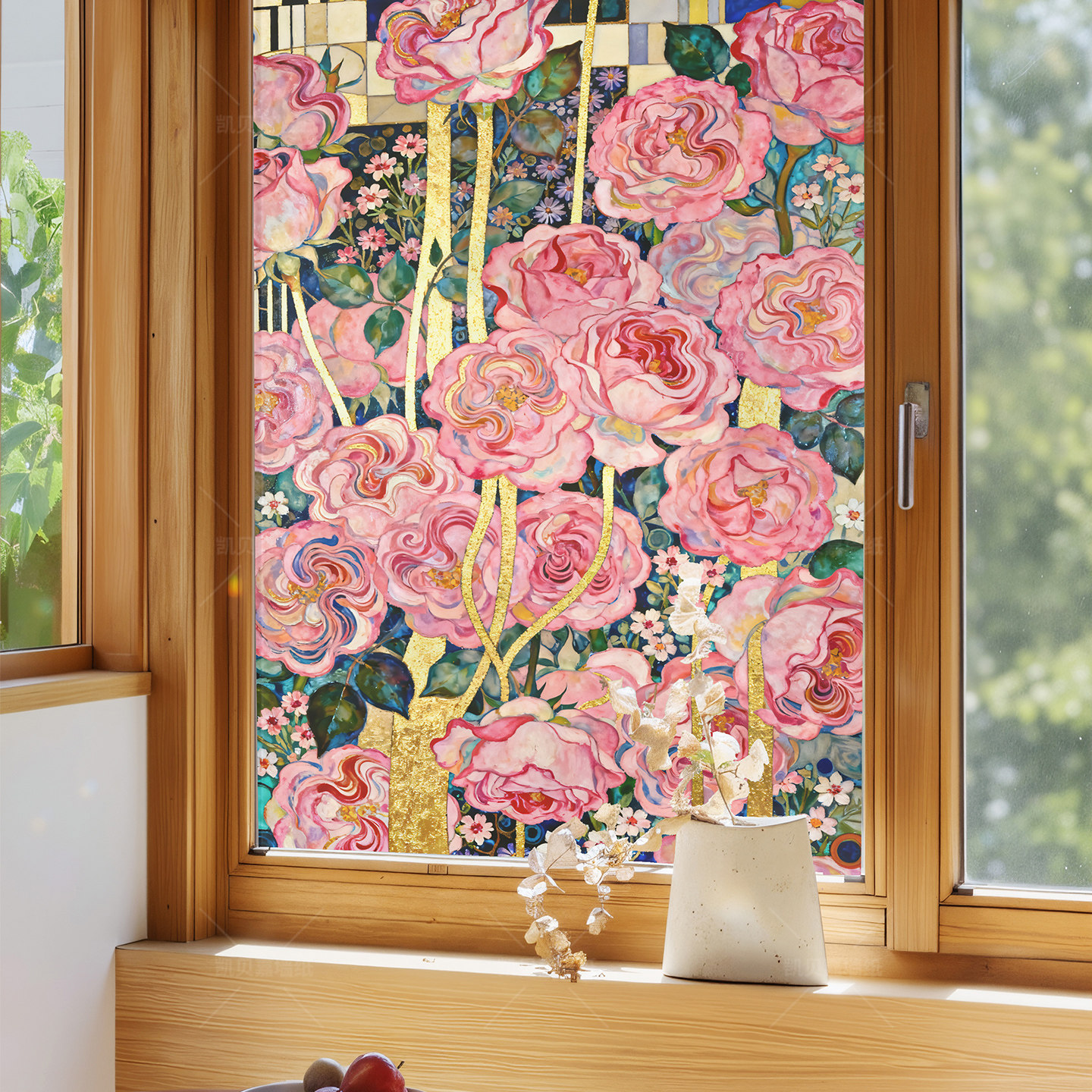 法式复古卫生间窗户玻璃贴膜防偷窥磨砂静电贴透光不透人燕子花鸟