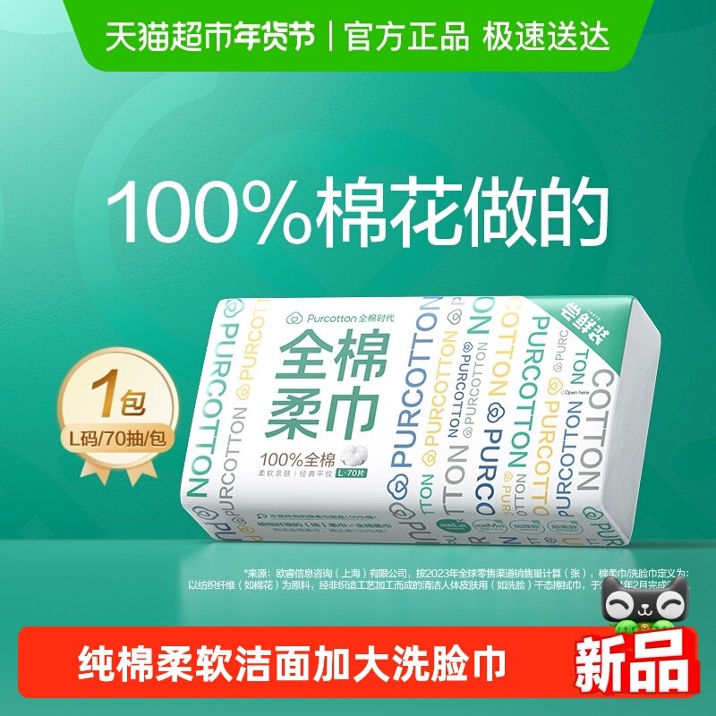 全棉时代纯棉柔巾抽取式柔软洗脸巾一次性洁面美容巾干湿两用L码