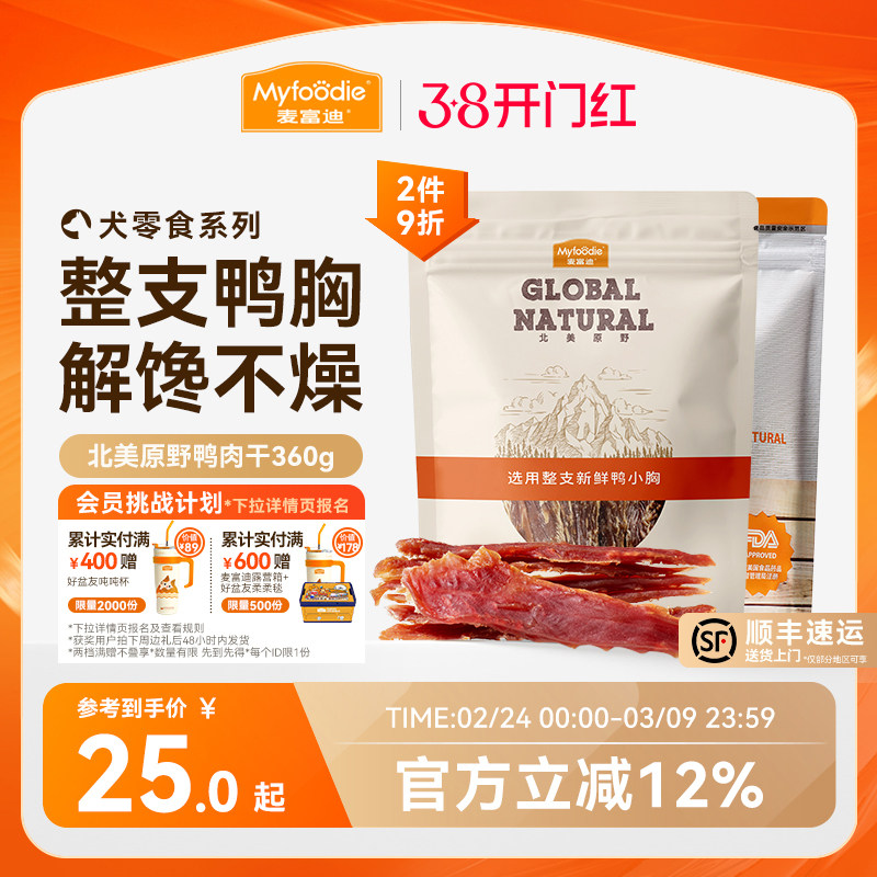 麦富迪狗狗零食薄切肉干鸭肉鸡胸肉小型犬幼犬训练奖励宠物磨牙棒