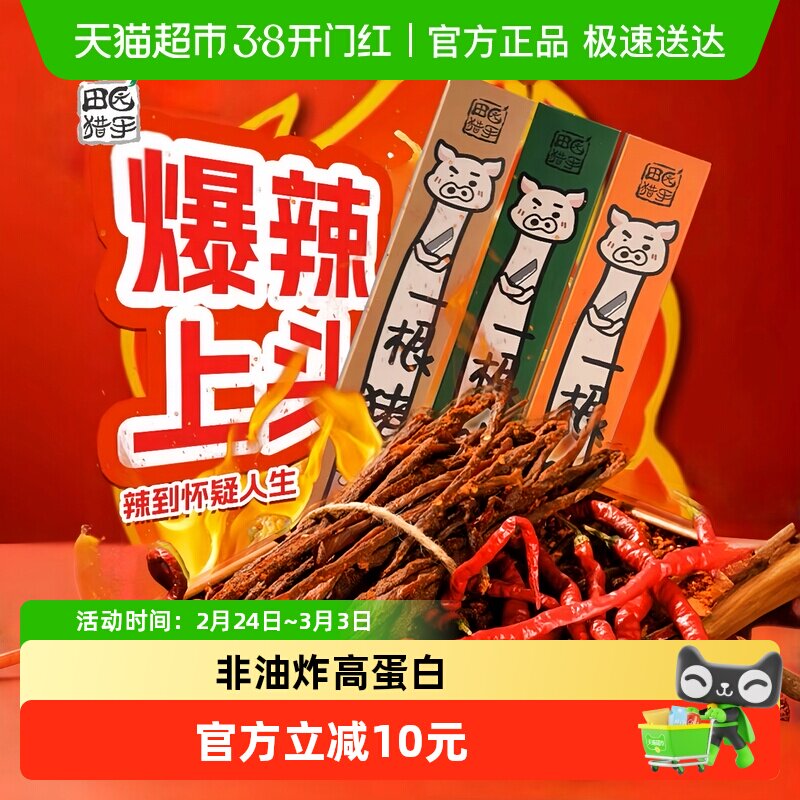【香菇来了】田园猎手一根猪斯哈辣超长细条猪肉干零食一只猪辣条