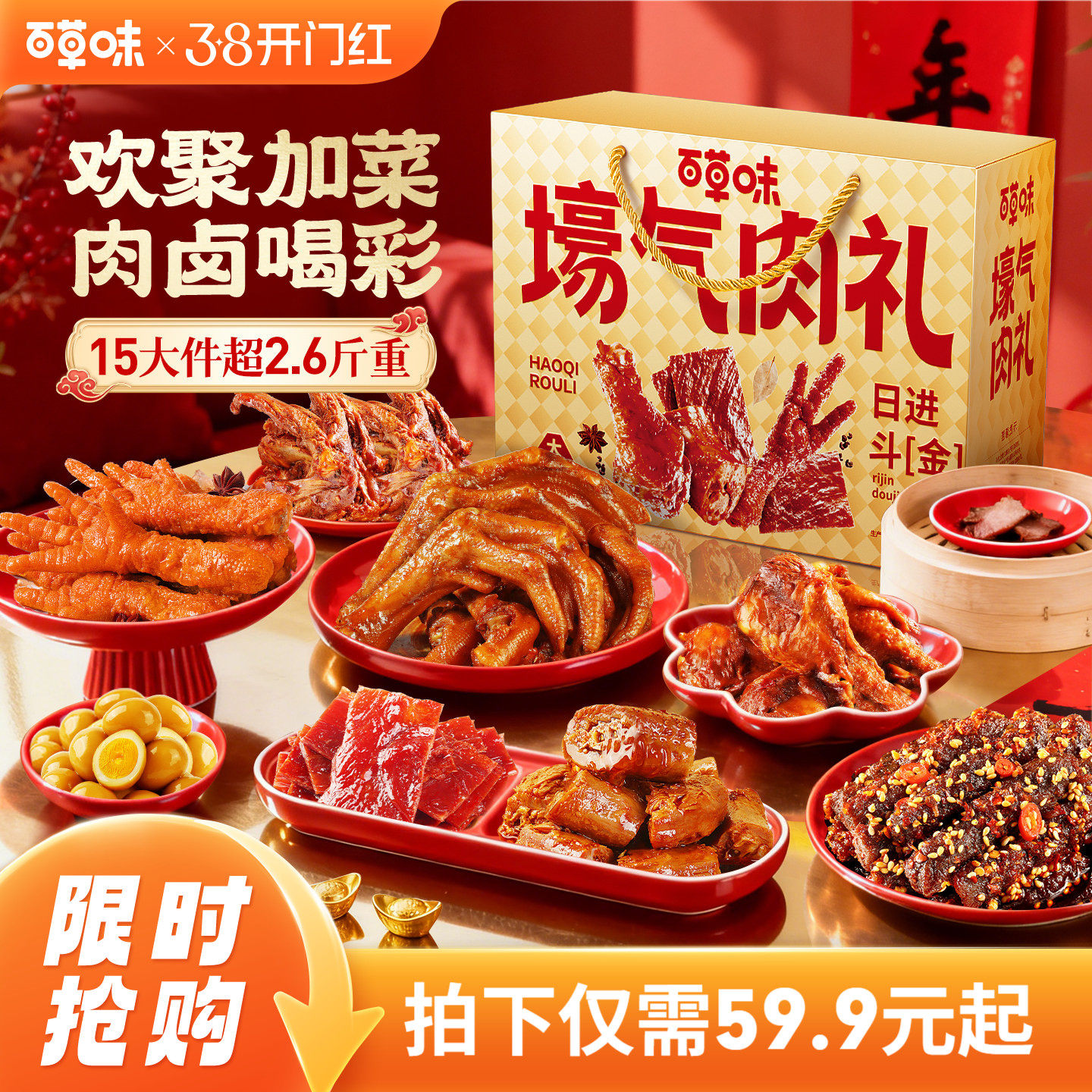 百草味肉礼盒卤味零食大礼包牛肉干鸡爪肉脯鸭肉卤味零食节日熟食