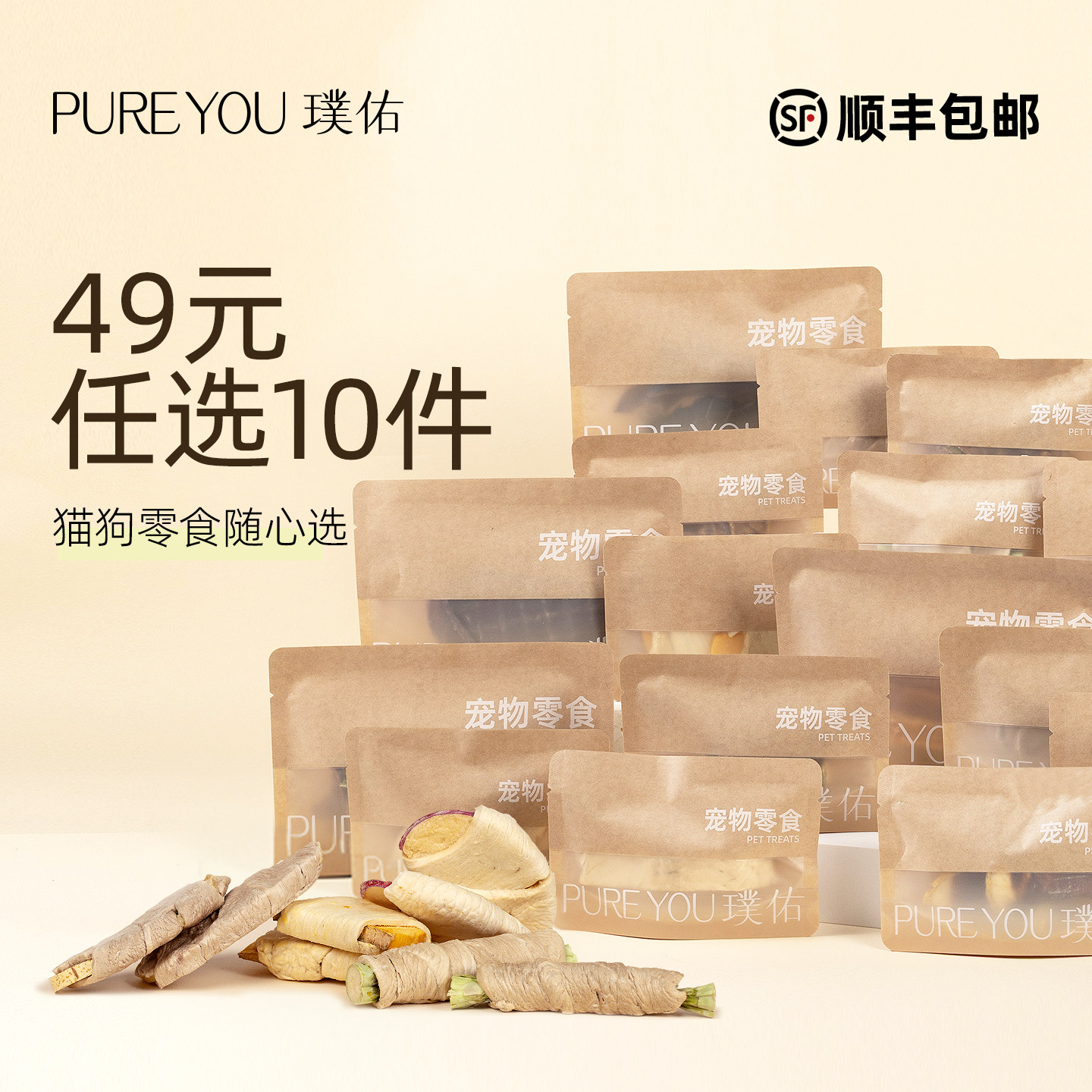 【49元任选10件】璞佑宠物零食肉干冻干烘干狗磨牙小型犬猫咪通用