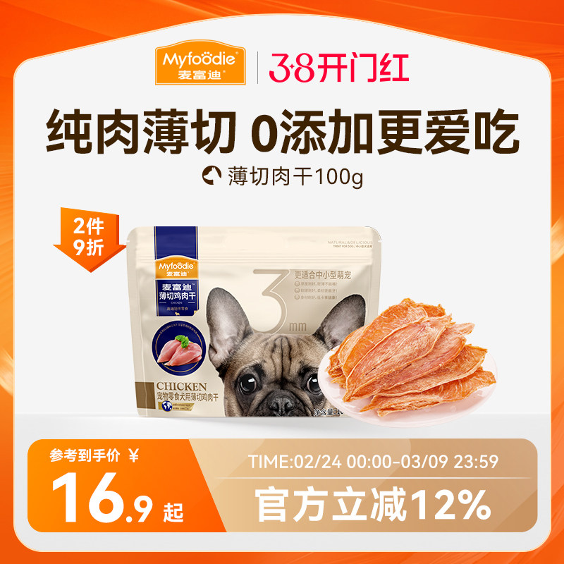 麦富迪狗狗零食鸡肉干薄切肉脯泰迪幼犬小型犬狗零食宠物零食225g