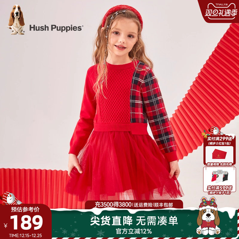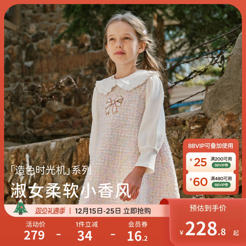 暇步士童装女童连衣裙春秋装新款大童新年长袖裙子儿童拼接公主裙