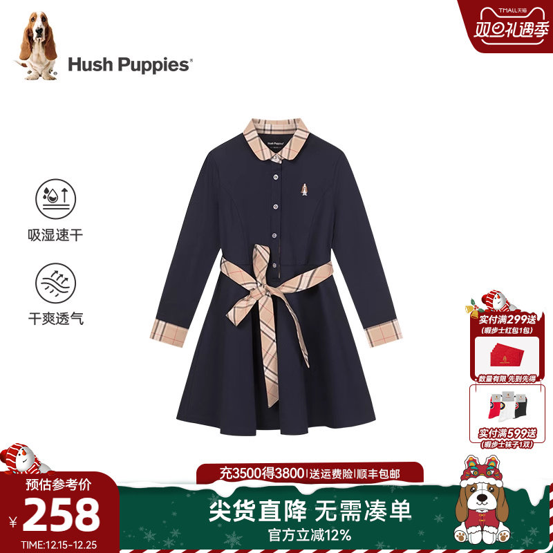 暇步士童装女童速干连衣裙春秋新款大童气质长袖裙儿童学院风裙子