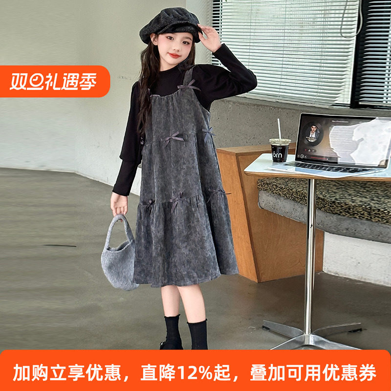 女童连衣裙秋冬2025新款儿童长袖公主裙秋季大童女孩背带裙子套装