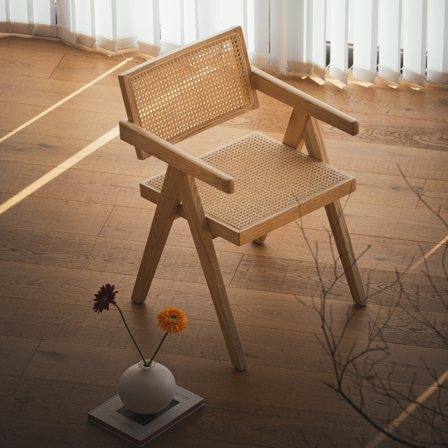 叁几 昌迪加尔椅 白蜡木靠背椅子舒服久坐实木餐椅家用书椅原木