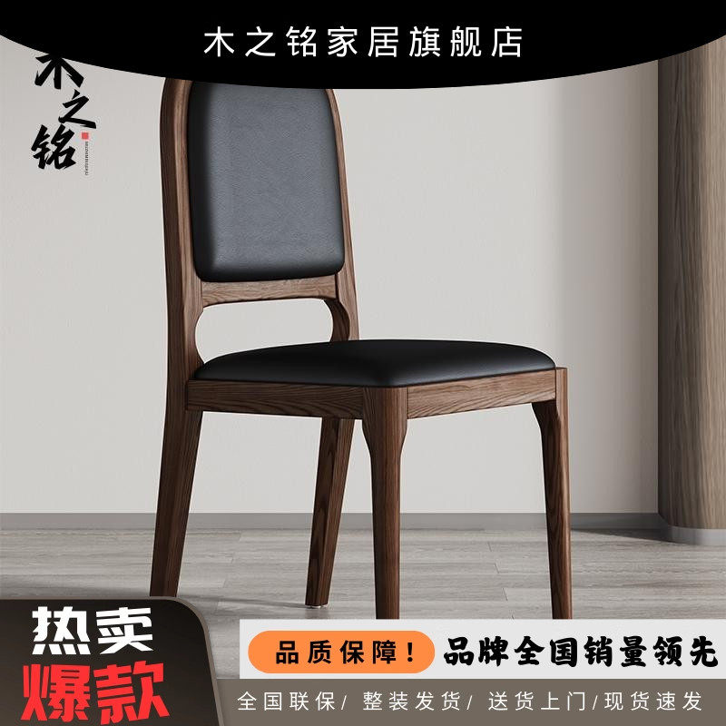 椅子实木茶椅家用餐椅黑胡桃洽谈椅靠背椅餐厅餐桌椅黑色书桌椅子