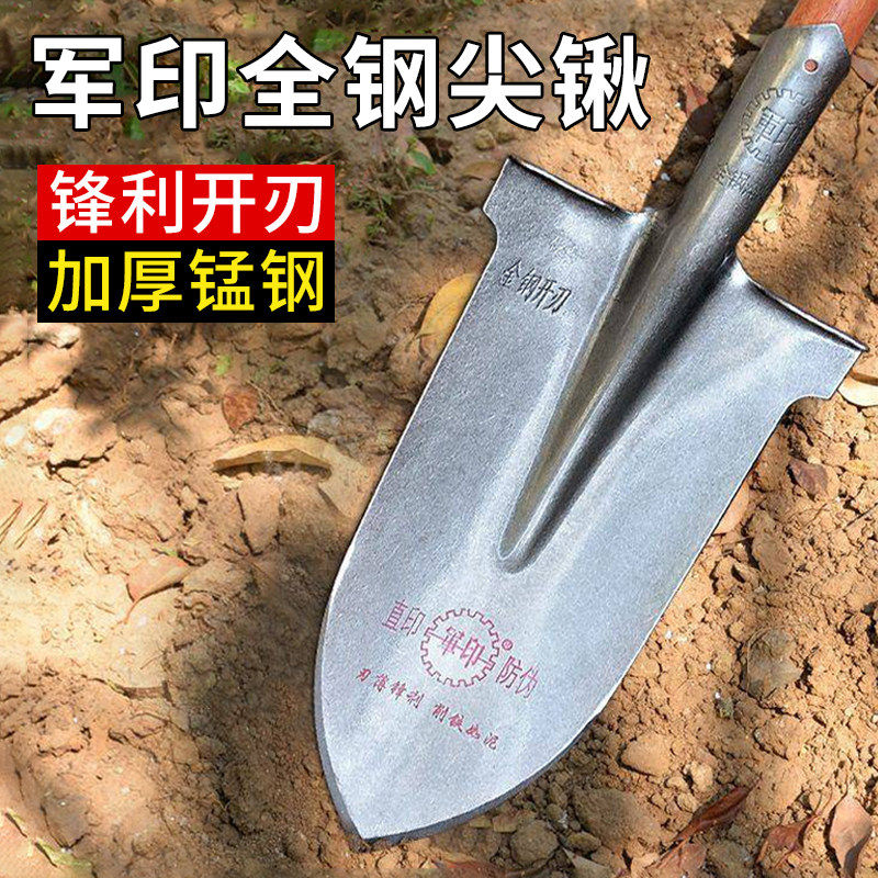 军印锰钢铁锹军工铲子家用松土挖坑尖锹加厚铁杴户外挖树专用铲锹