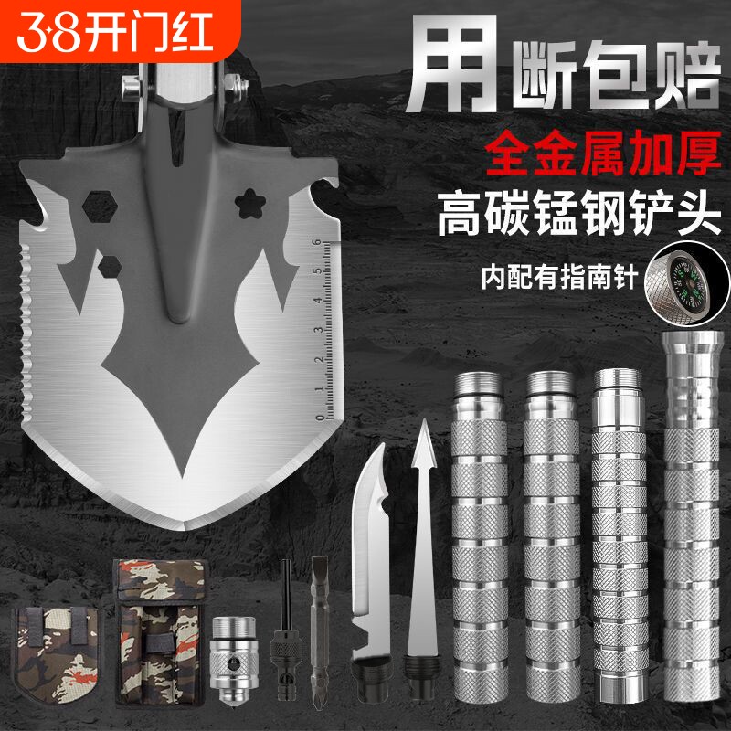 工兵铲户外野营军工铲铁锹多功能锰钢露营兵工铲钓鱼车载折叠铲子
