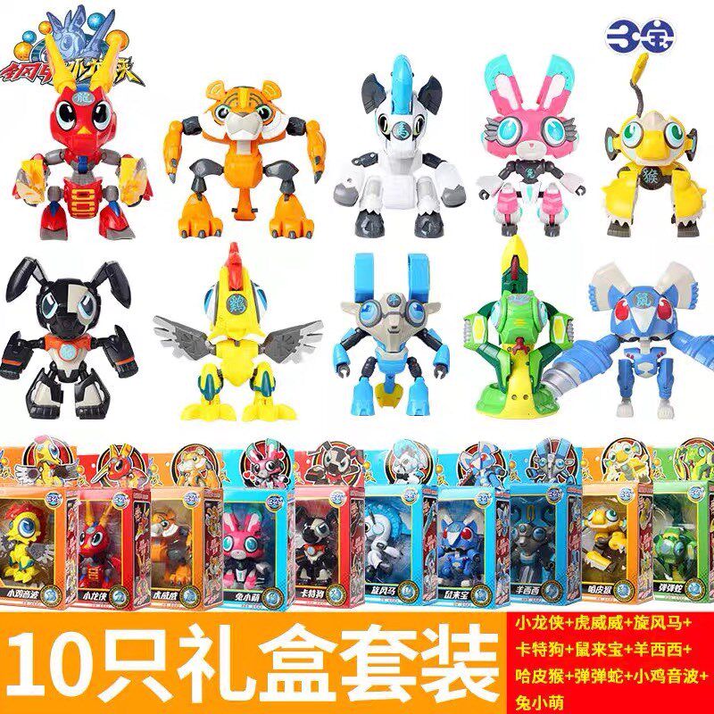 正版三宝钢甲小龙侠玩具套装变形机器人虎威威旋风马十二生肖全套