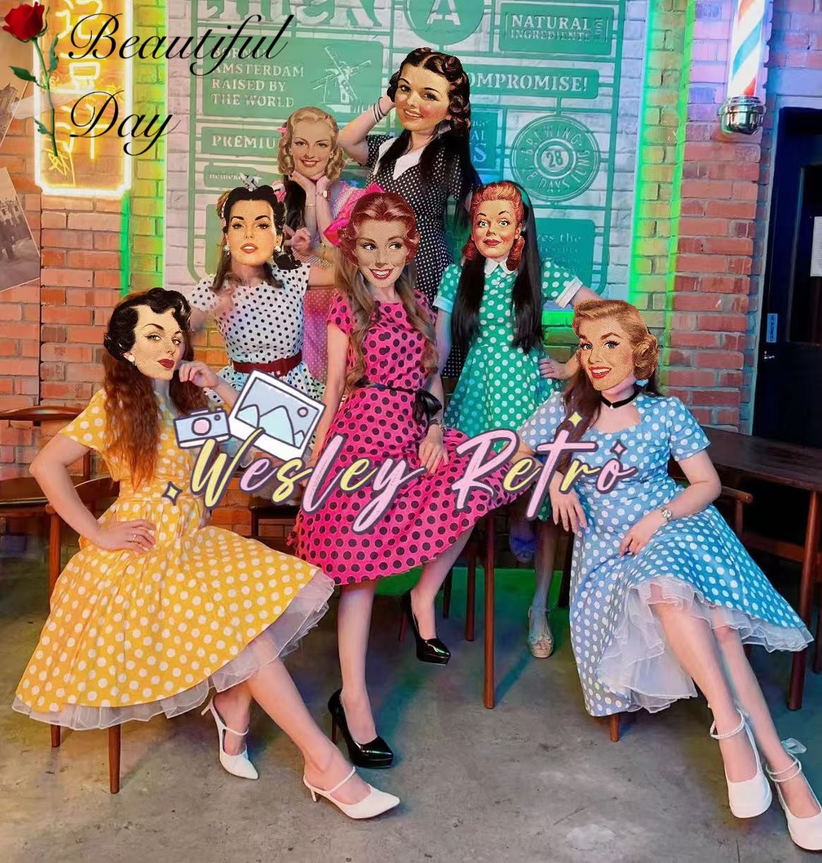 复古年代感港风波点连衣裙派对舞蹈表演出Polo中长短袖大摆裙子夏