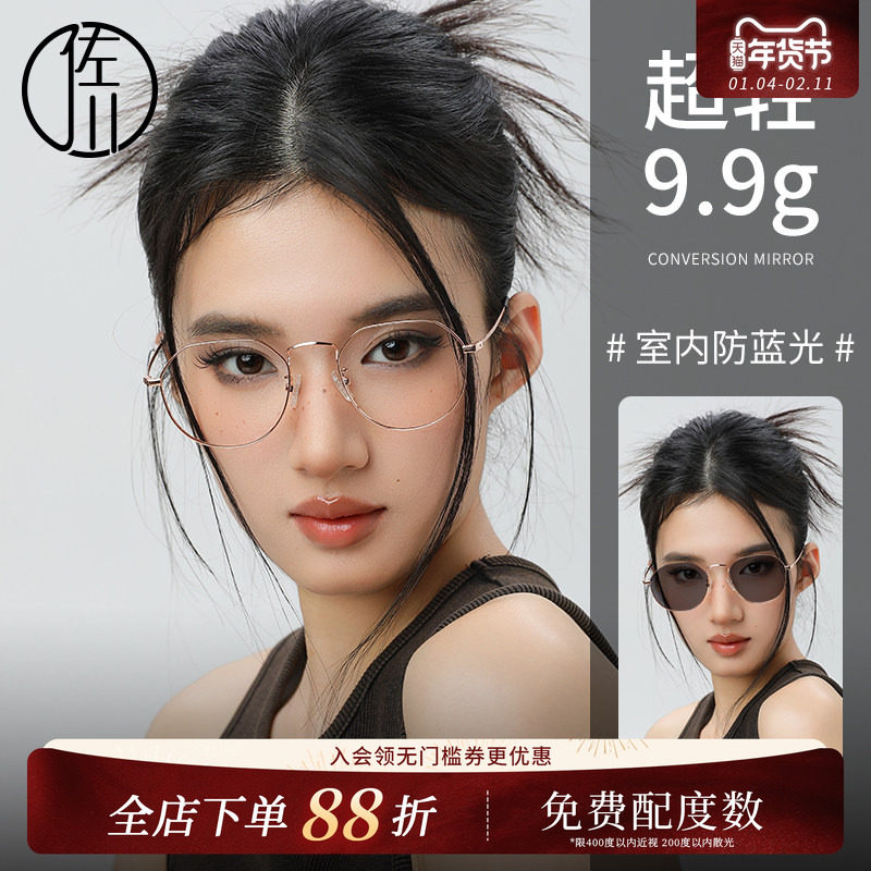 【免费配度数】佐川轻盈多边形防蓝光变色眼镜女圆脸近视镜框可配