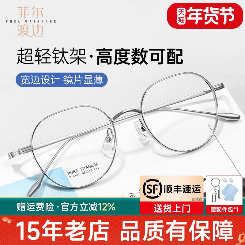 高度数近视眼镜框女厚边玫瑰金超轻纯钛多边形宽边防蓝光近视镜框