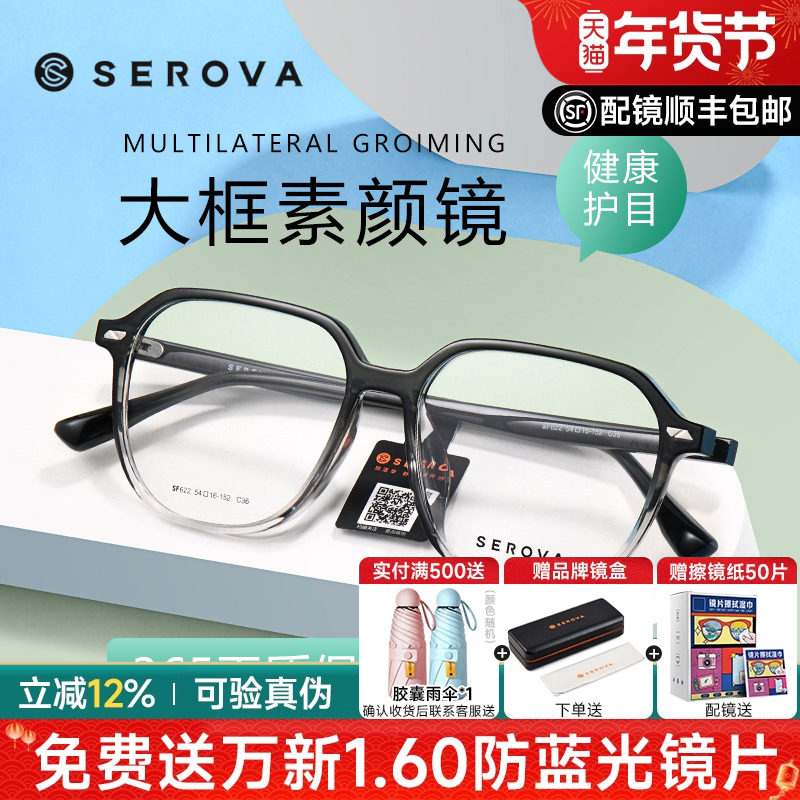 施洛华镜架女多边形渐变眼镜架可配近视镜框大框男士防蓝光SF622
