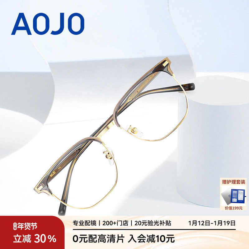 AOJO澳镜近视眼镜女可配度数AJ101FG099半框眼镜男可配近视镜框