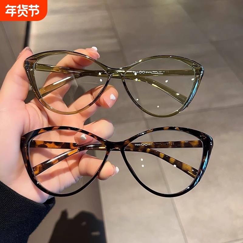 网红同款三角猫眼百搭眼镜架辣妹可配度数近视镜框防蓝光平光玳瑁