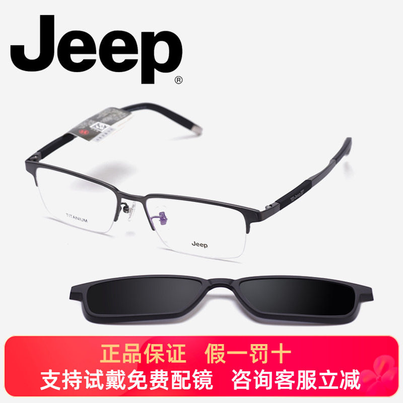 Jeep吉普经典商务半框眼镜架男记忆钛近视镜框舒适偏光夹片T7095A
