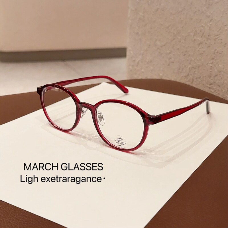 安可拉红色圆框超轻TR90眼镜可配度数近视镜框大脸显瘦防蓝光平光