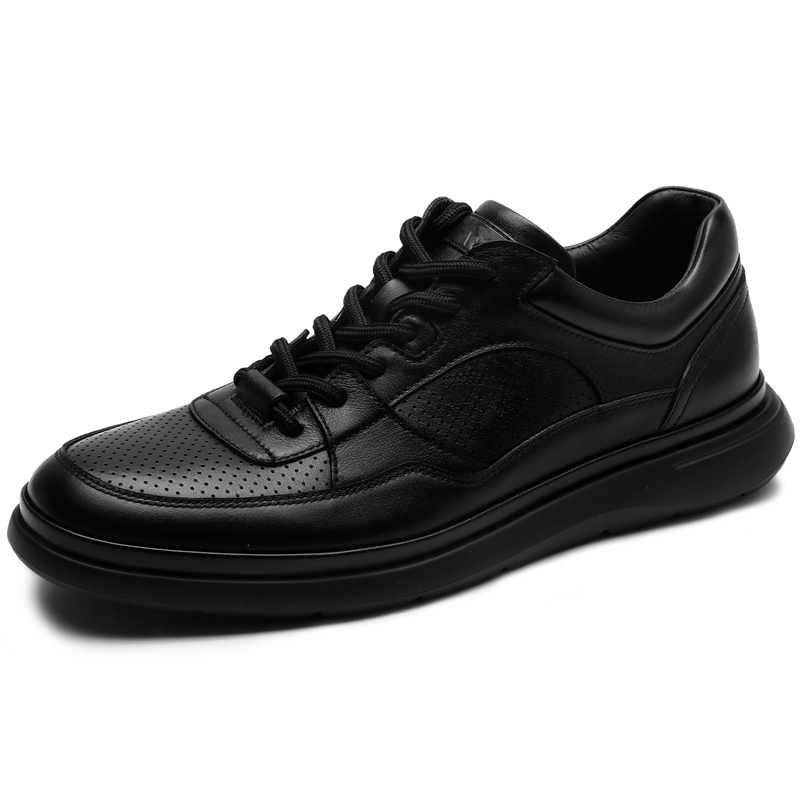 3515强人皮鞋真皮软底户外运动跑步休闲鞋软底黑色男士轻便透气鞋