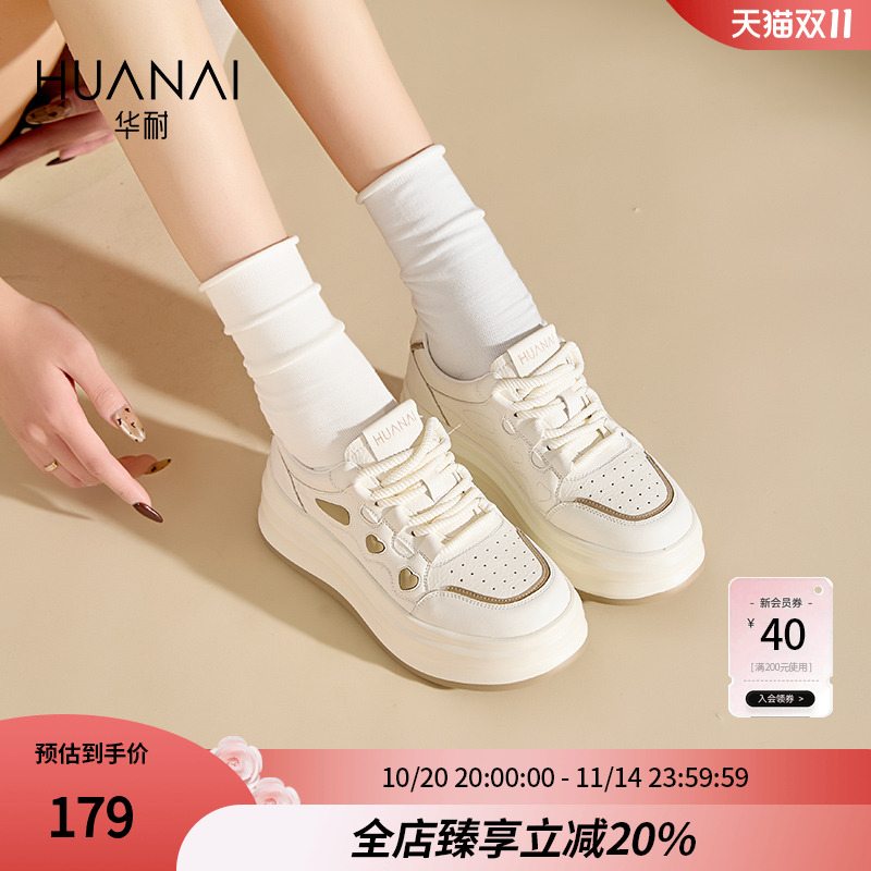 华耐2025秋季厚底爆款板鞋女增高休闲百搭小白鞋舒适轻便透气鞋子