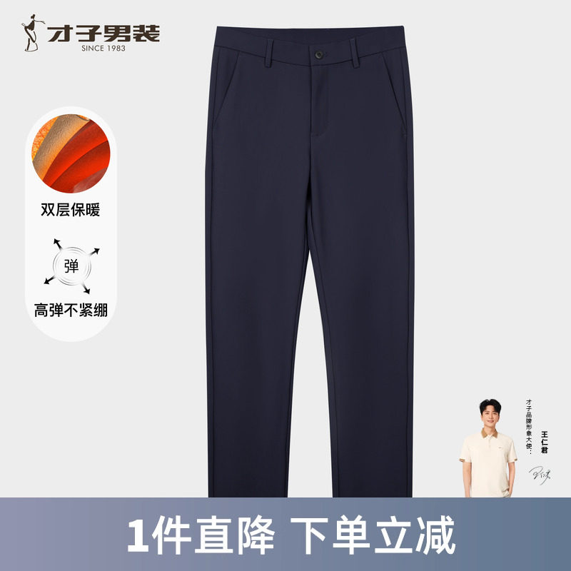才子男装四面弹休闲裤男士2025秋冬新款加厚保暖弹力商务修身裤子