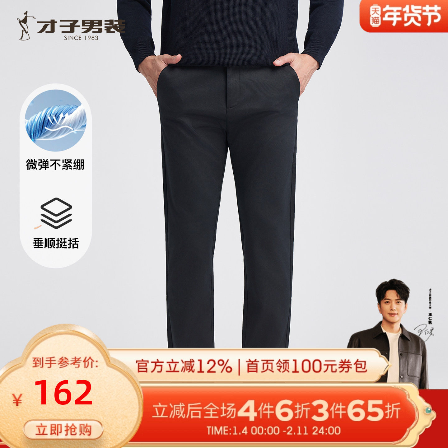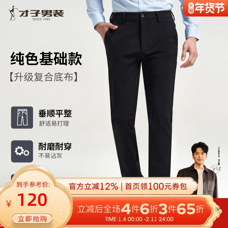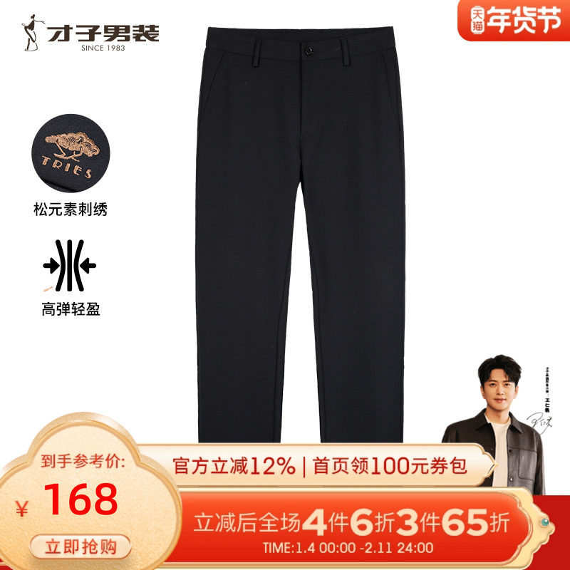 才子男装商务正装休闲裤男修身工装休闲长裤直筒弹力品牌黑色裤子