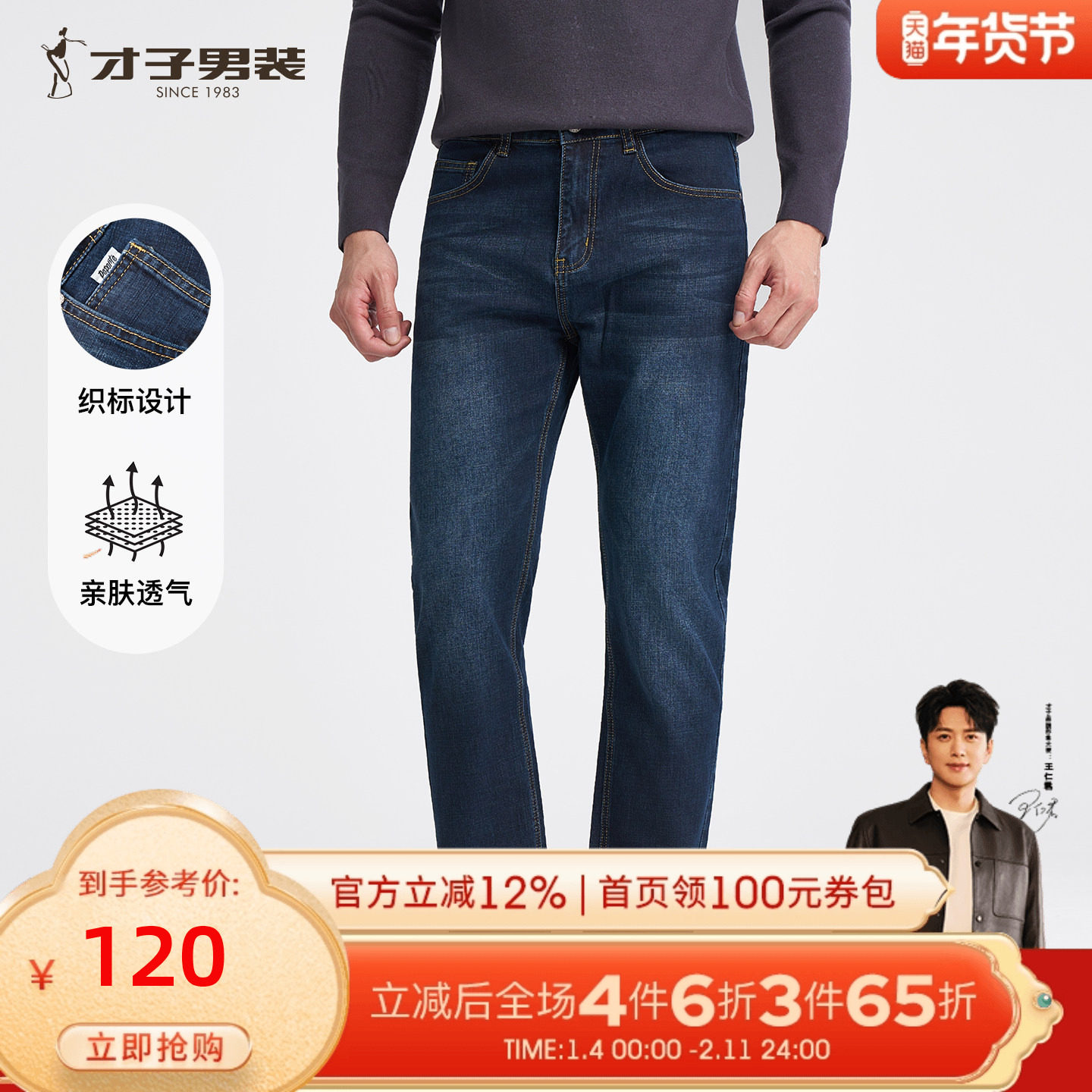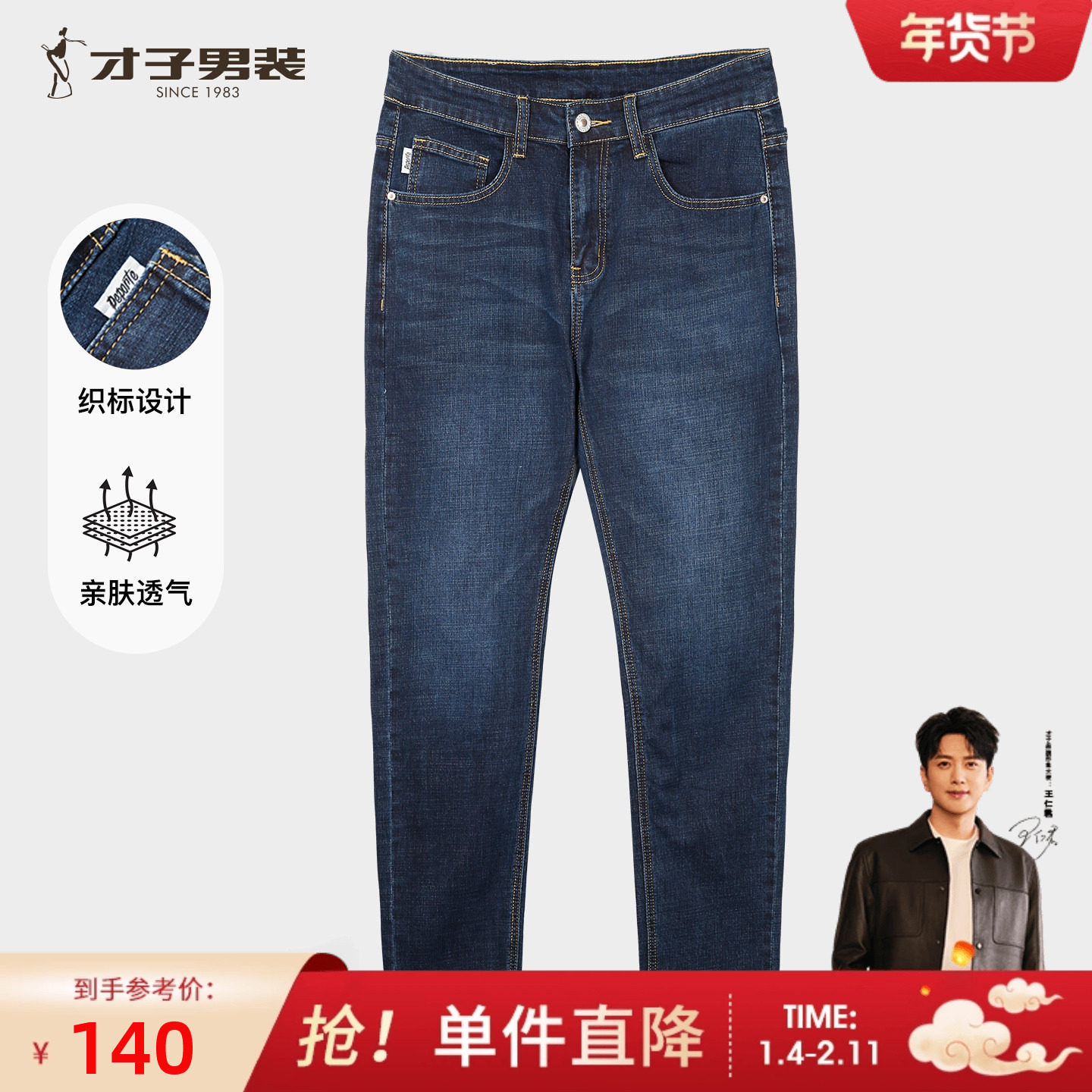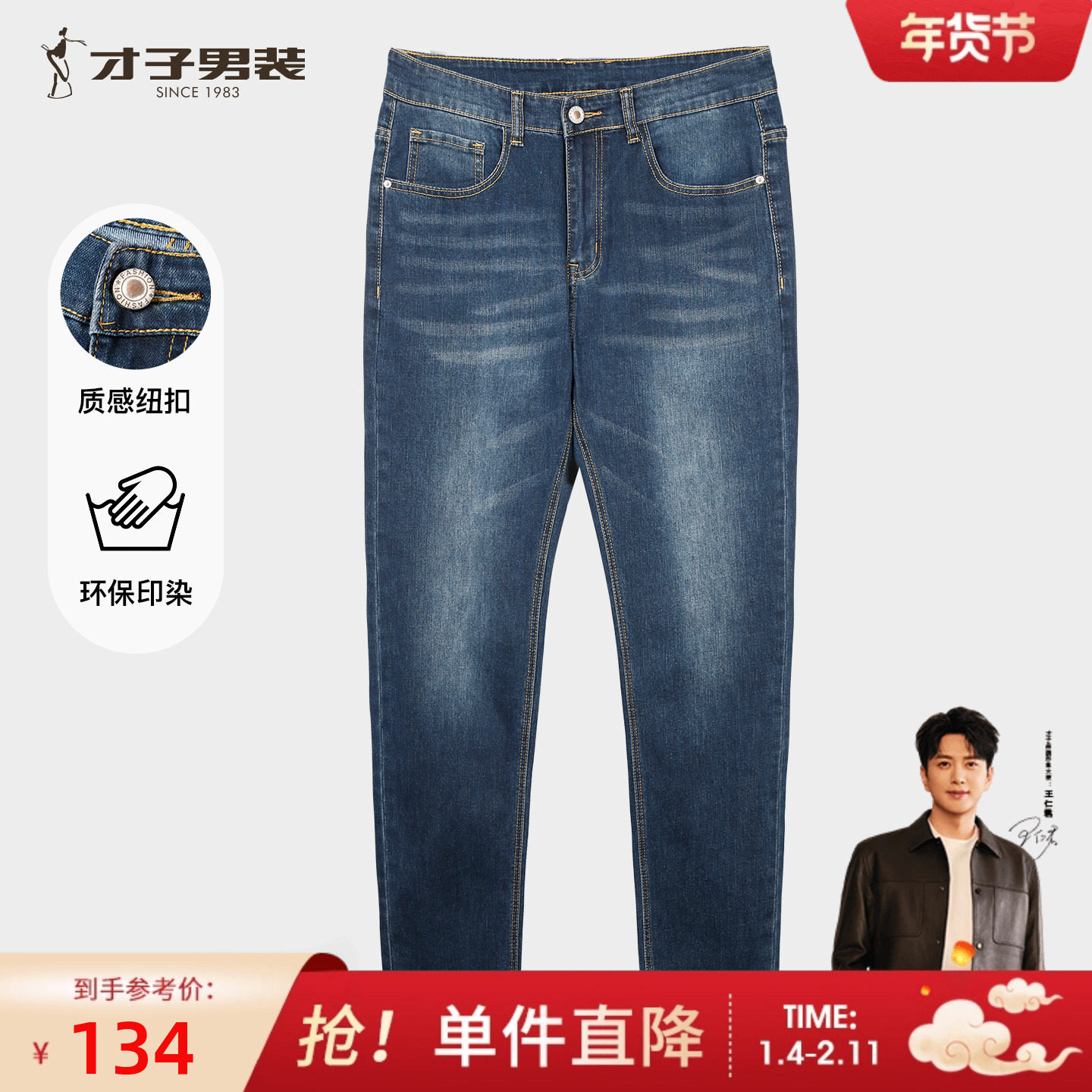 【精选新疆棉】才子男装秋冬休闲直筒牛仔裤男新款长裤蓝色中腰裤