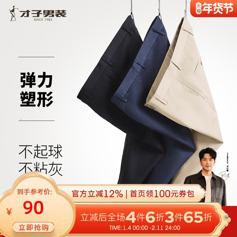 才子男装弹力休闲裤男士2025春秋季新款修身直筒商务高端纯色裤子