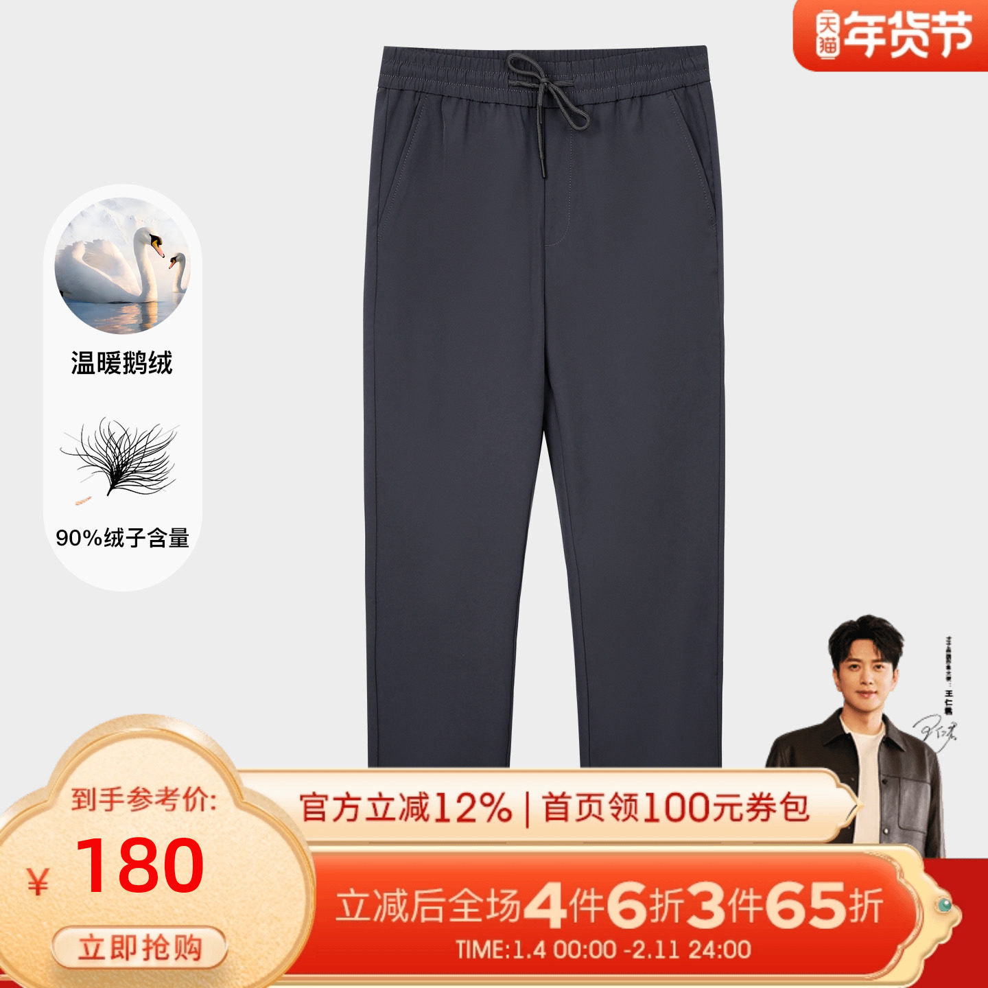 才子鹅绒羽绒裤男士2025冬季新款修身直筒加厚松紧腰外穿休闲裤子