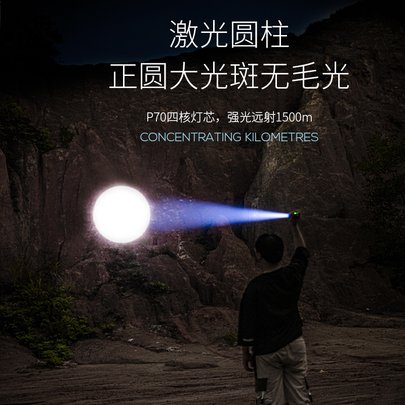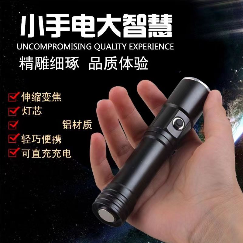超亮强光手电筒锂电池可充电户外伸缩变焦小型远射灯可柔光氛围灯