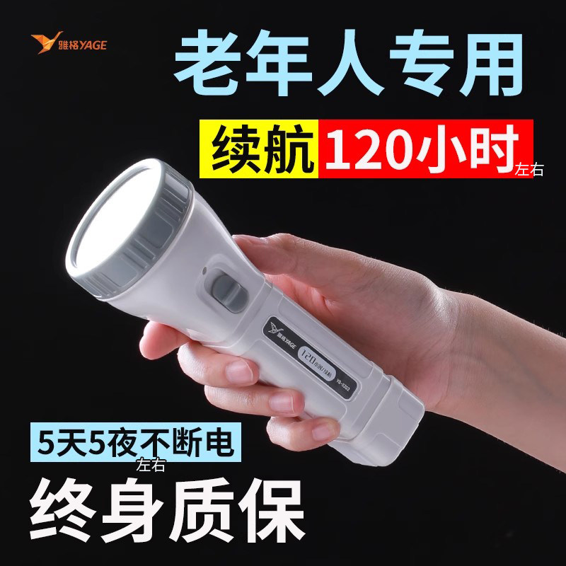 【老人专用】雅格续航王手电筒锂电池超亮远射120小时应急照明灯
