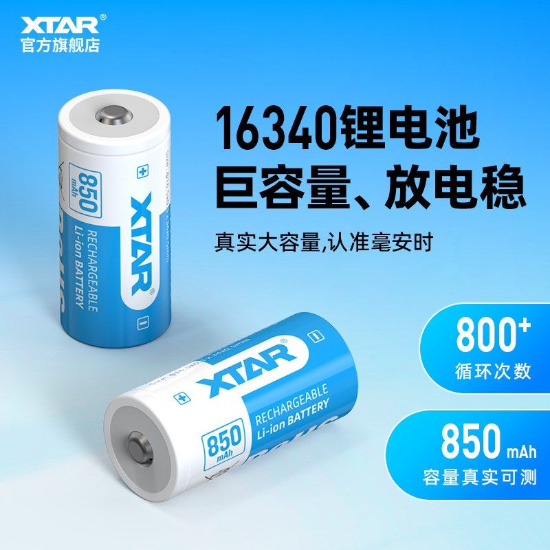 XTAR爱克斯达 16340电池手电筒锂电池尖头带保护板850毫安高性能