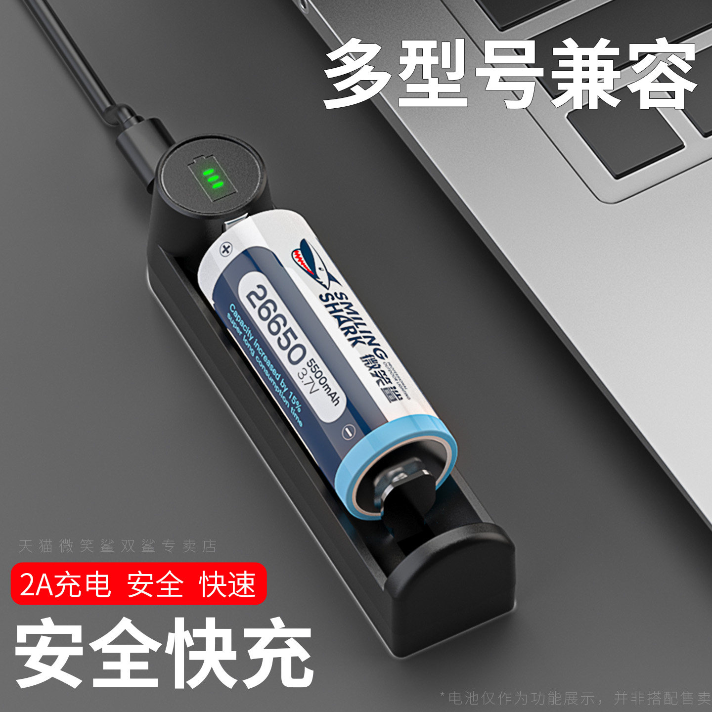 倍量18650锂电池充电器大容量3.7v强光手电筒小风扇4.2v头灯可充
