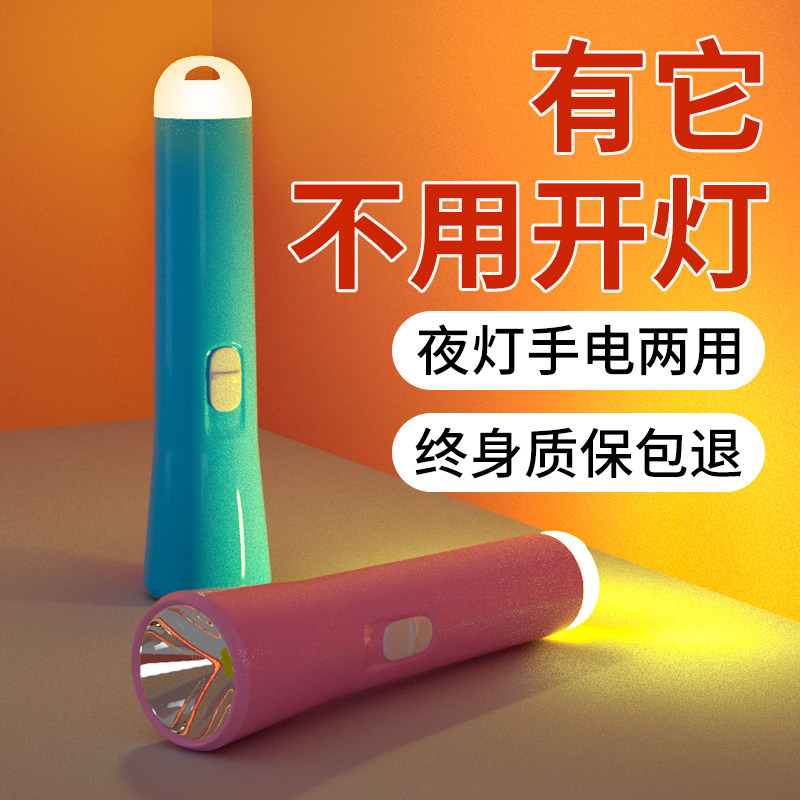 雅格LED手电筒锂电池儿童不伤眼强光学生住宿宝妈婴儿小夜灯便携