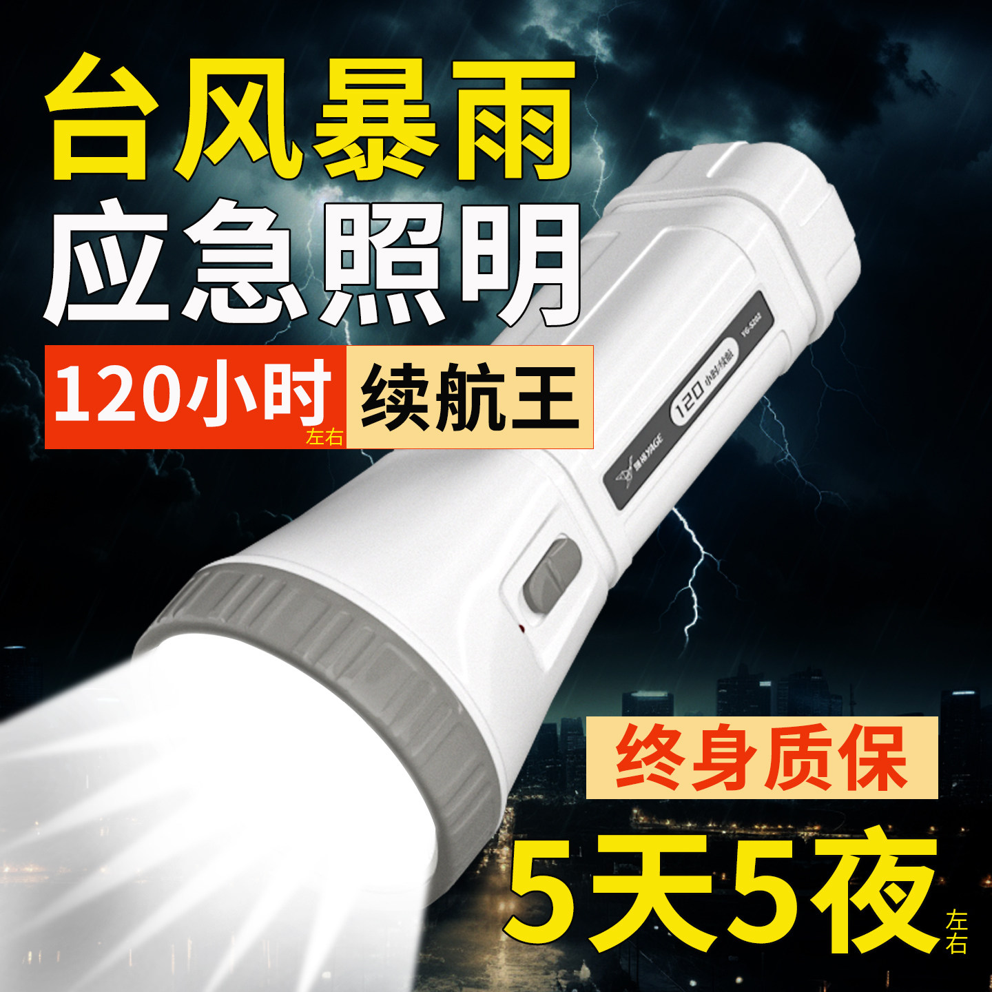 雅格120小时续航王手电筒锂电池充电台风暴雨停电应急抢修照明灯