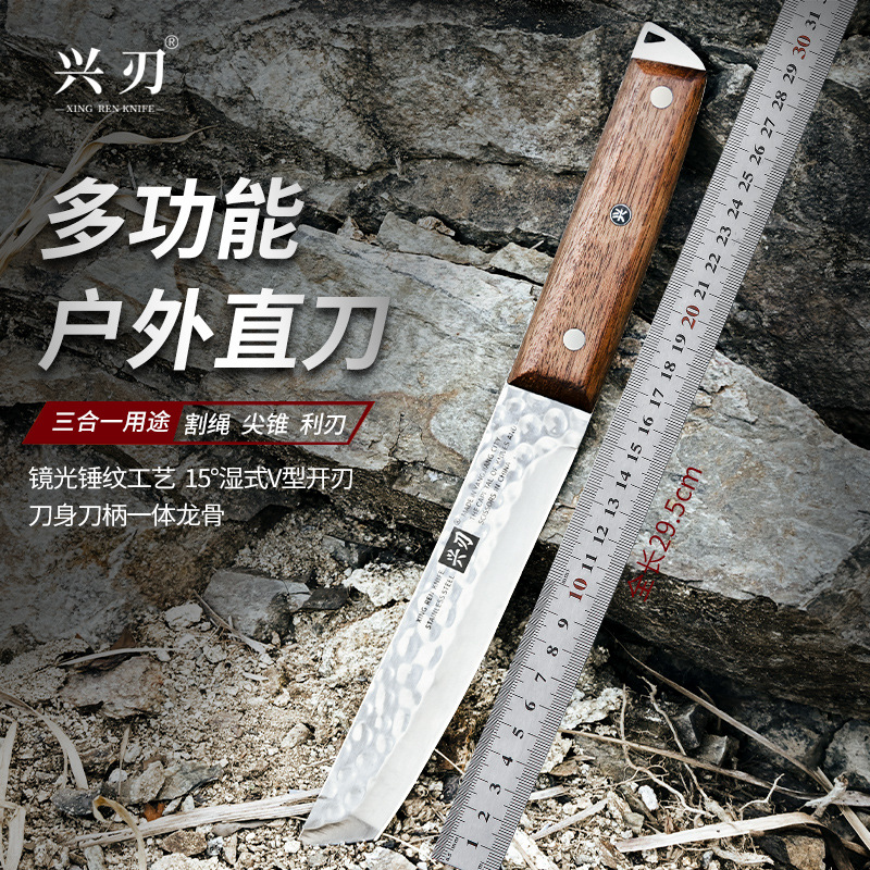 户外车载小刀多功能刀野外生存刀防身锻打吃肉刀不锈钢大号水果刀