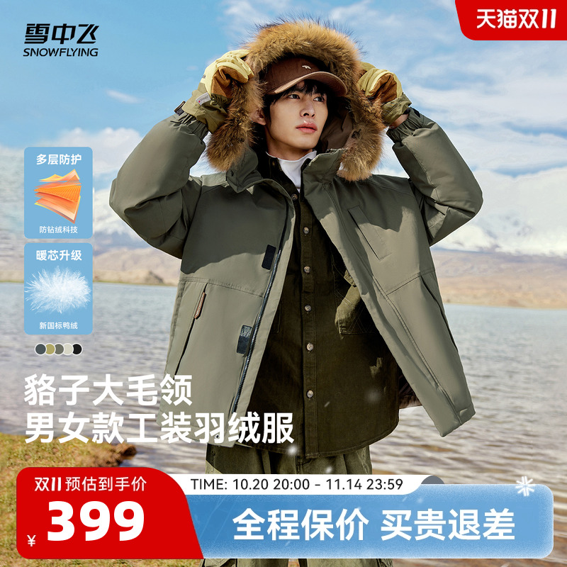 雪中飞户外工装羽绒服男女同款2025新款中长款加厚毛领派克服外套