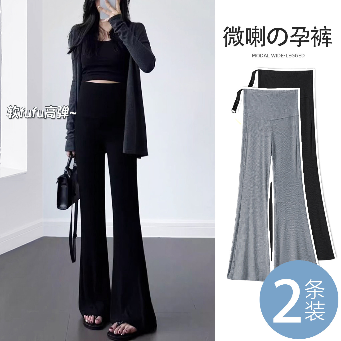 孕妇裤春装小个子无托腹喇叭裤子孕期不勒肚子糯米微喇裤春季外穿
