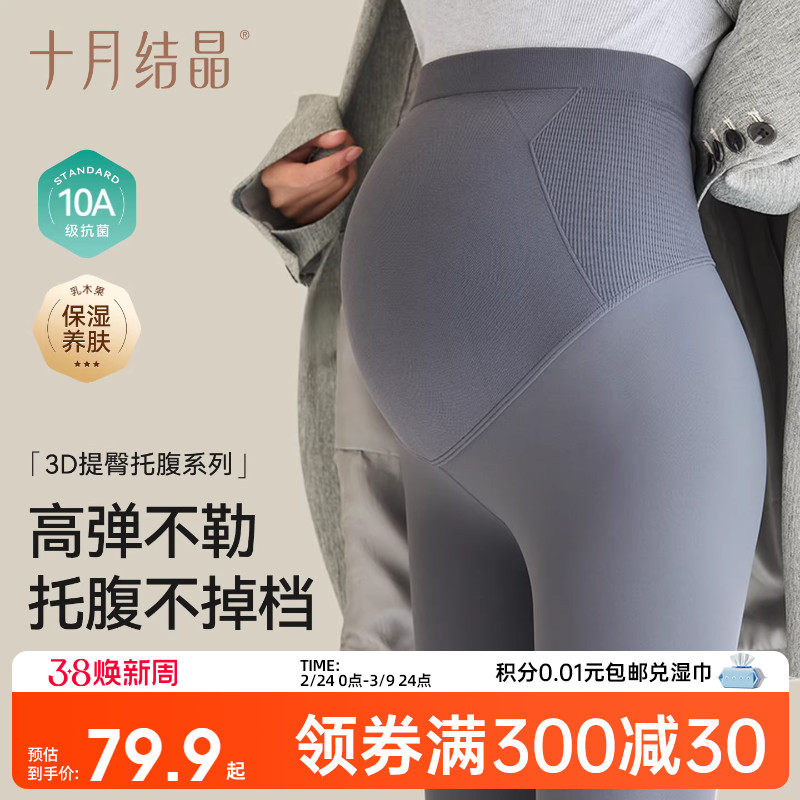 十月结晶孕妇打底裤子小个子裸感不勒肚子外穿不掉档鲨鱼裤春装季