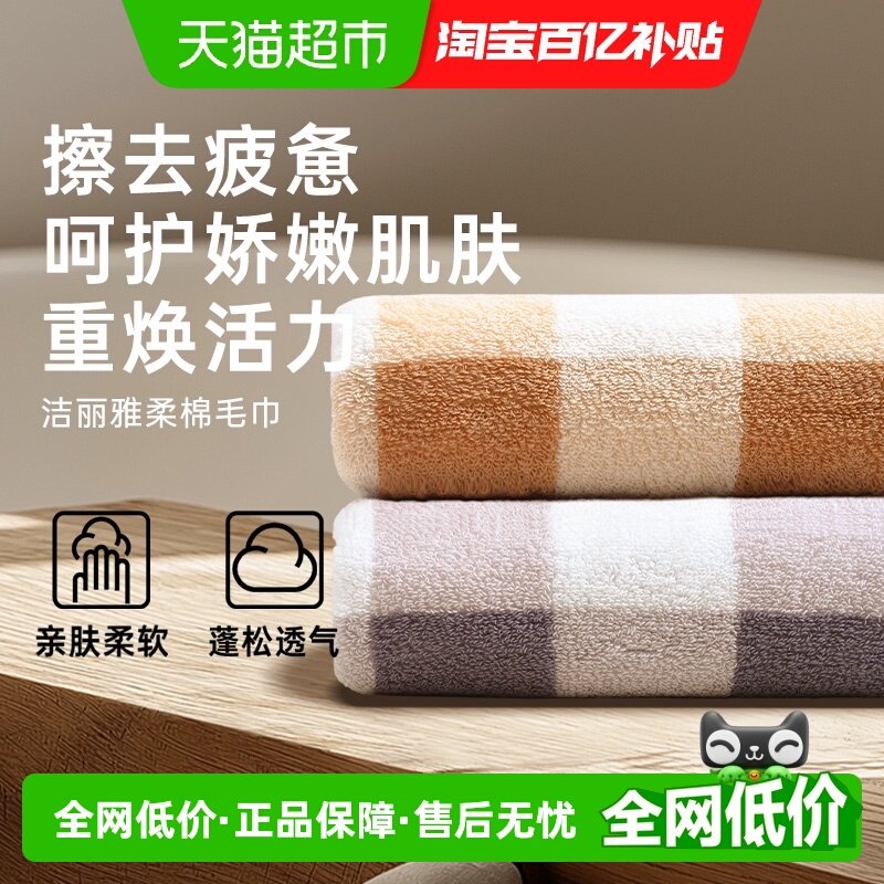 洁丽雅毛巾方格纯棉洗脸家用面浴巾吸水速干不易掉毛洗澡成人毛巾