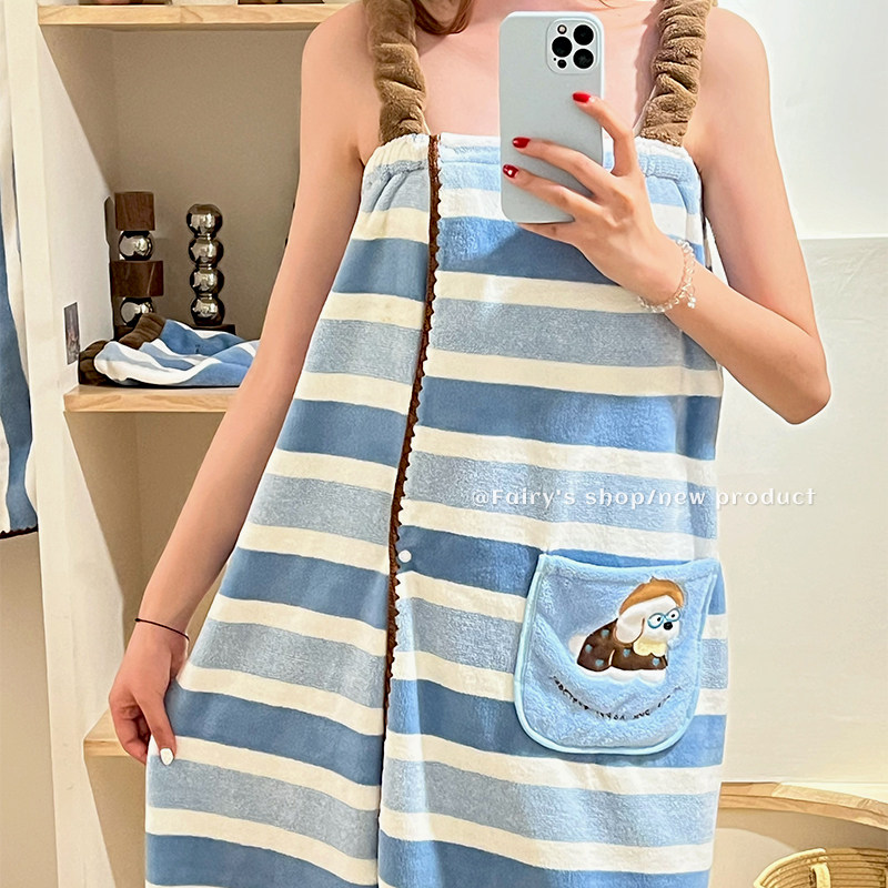 珊瑚绒条纹浴巾吸水亲肤速干成人毛巾套装家用卫生间宿舍女款浴裙